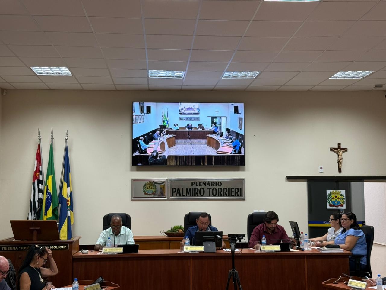 Os vereadores que compõem a 19ª Legislatura da Câmara Municipal de Monte Azul Paulista se reuniram no dia 17 de novembro no Plenário Palmiro Torrieri para a 19ª Sessão Ordinária. Na pauta o Projetos de Lei 1.619, 1.621 e 1.625/25 de autoria do Executivo que dispõe, respectivamente sobre a criação do Serviço Público de Loterias do Município, que altera o artigo 190 da Lei 690/80- Código de Obras- e que dispõe sobre os Feriados Religiosos Municipais para 2026. Ambos os projetos foram despachados para as Comissões Permanentes da Casa de Leis. Por parte dos vereadores a pauta teve dois Projetos de Lei, quatro requerimentos e 11 indicações. Na Ordem do Dia foram aprovados, em 1ª discussão e votação, os Projetos de Lei 1.609 e 1.610/25 respectivamente sobre o Plano Plurianual para o quadriênio 2026/2029 e a Lei Orçamentária Anual (LOA) e os quatro requerimentos. Usaram a palavra discutindo a pauta da sessão os vereadores Mardqueu Silvio França Filho “Samurai Caçador”, Eliel Prioli, Cláudio Antônio Henrique, Percival Rogge, Lucia Ferro e o presidente Wilson Rodrigues “Fia”.